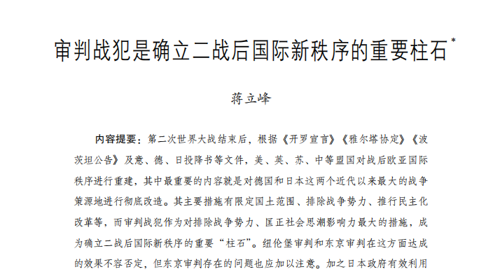 蒋立峰:审判战犯是确立二战后国际新...